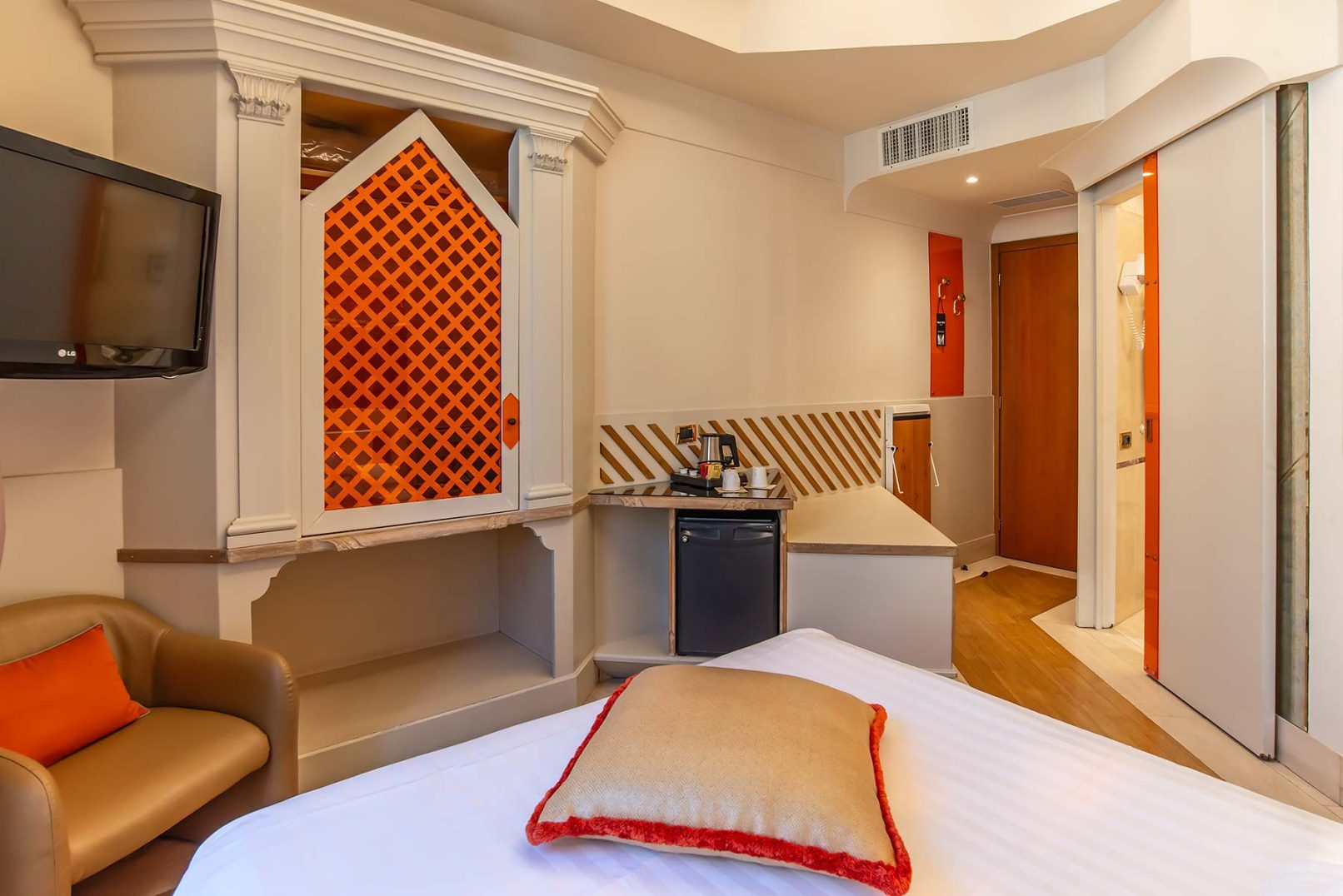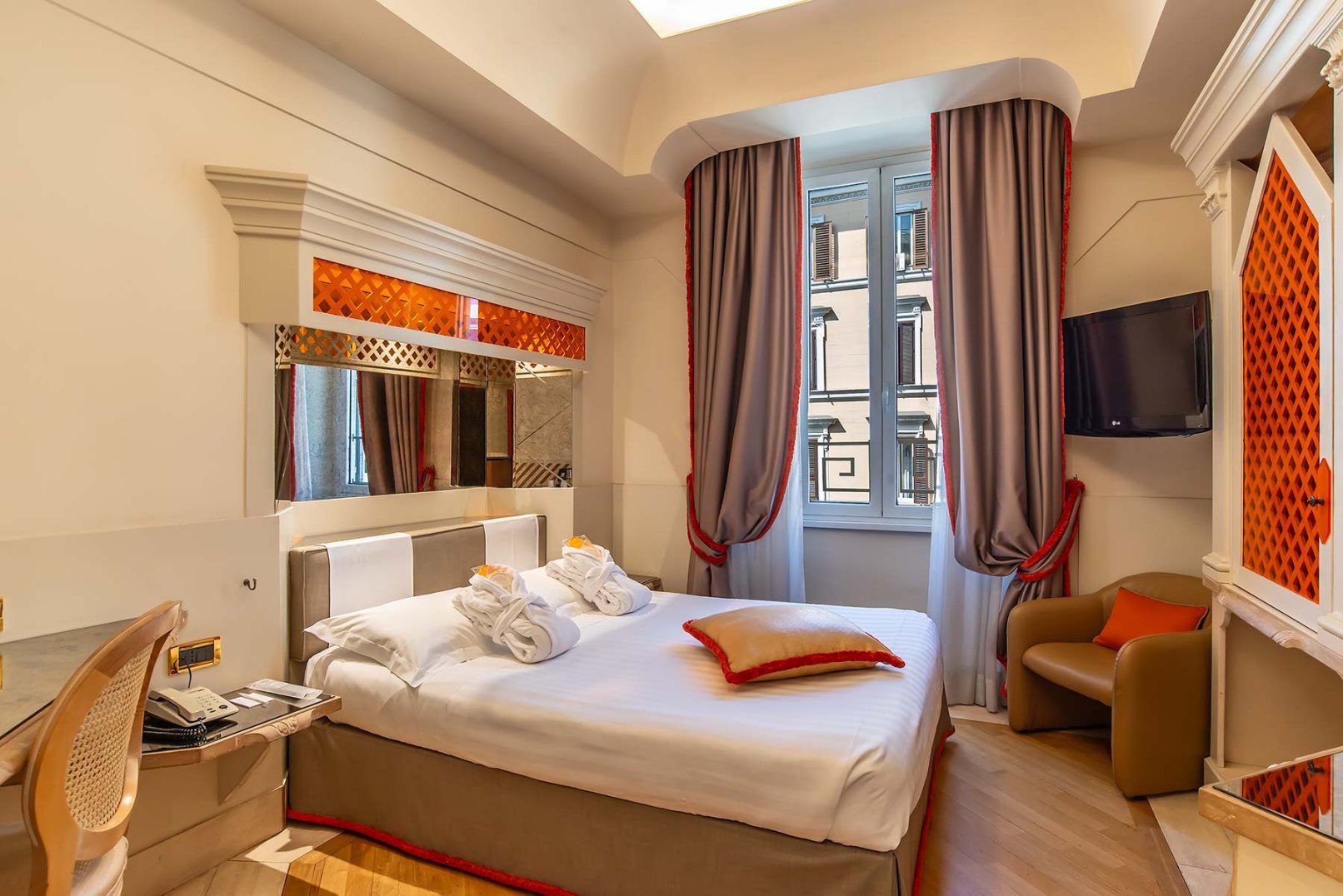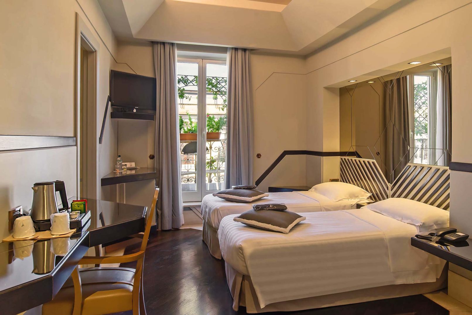 Camere confortevoli in stile moderno o classico, di circa 16mq, con letto matrimoniale o letti singoli.